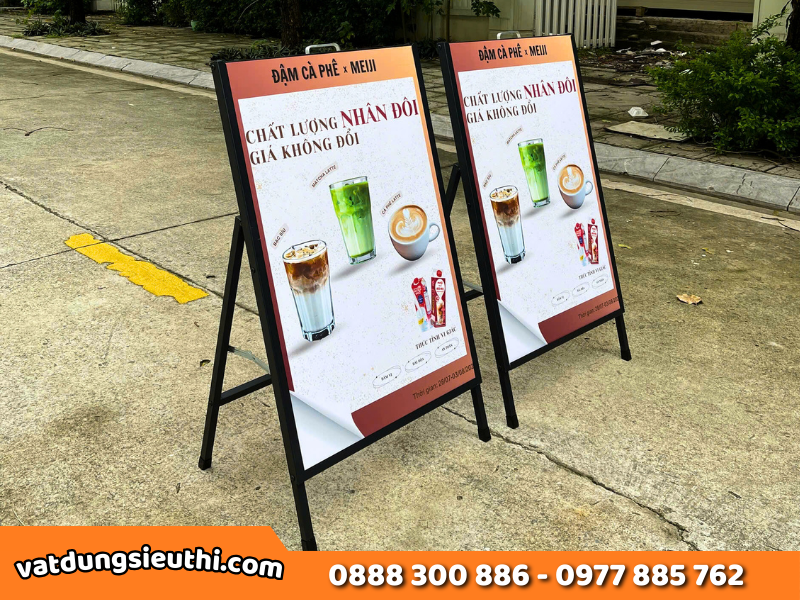 Từ cửa hàng, siêu thị, quán cà phê cho đến các sự kiện lớn, standee chữ A 1 mặt đều đáp ứng tốt.