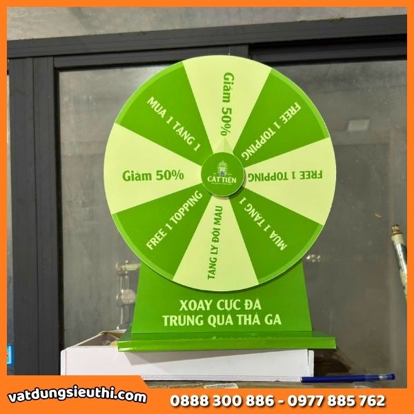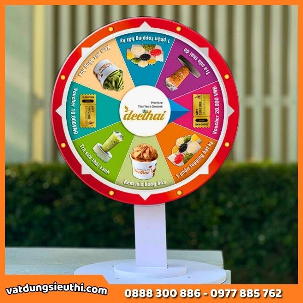 Vòng quay trúng thưởng mini là công cụ khuấy động không khí không thể thiếu trong các chương trình sự kiện, minigame. Nhỏ gọn nhưng “có võ”, sản phẩm fomex chống nước, dễ vận chuyển, thiết kế theo yêu cầu.